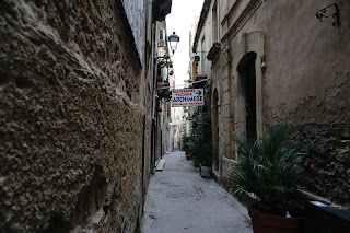 O oră mai târziu: intrarea în Siracusa. Pe unde o luăm? Drept înainte, ne șoptește o doamnă de la autogară. Hai! Să căutăm Ortigia. Și vestigiile alea grecești. Și, cum altfel, clădirile baroce. Mergem preț de vreo 10 minute pe ceea ce pare a fi principala arteră ce duce spre insulă. În zare se vede un ceva ca un pod. Îmhm, podul Umberto. Care ne aruncă direct în brațele templului lui Apollo. Fotografiem ruinele și un porumbel care dădea târcoale. Ne hotărâm să mergem în mod organizat spre nicăieri concret. Pare cumva că ne îndepărtăm de centru și ne avântăm în adâncurile înguste și întunecate ale mult lăudatului nucleu al Siracusei antice. Virăm la fel de organizat stânga. Ajungem să ne privim ochi în ochi cu Marea Ionică. Și cu vasele pescarilor. Și cu iahturile sicilienilor. Fotografii de tablou într-un mic port. Și ajungem de unde am plecat. Hmmm, ceva nu pare în regulă. Unde e minunăția de Duomo? Și primăria?