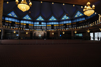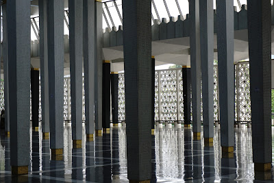 Tot așa, un fel de beton croșetat și o eu în mov din cap până în picioare a adus și vizita la Moscheea Națională. Simbol național al islamului, clădirea are un acoperiș cu 16 colțuri și o sală de rugăciune cu 48 de cupole. Forme abstracte, multă geometrie, versete din Coran, fierărie, acoperiș albastru, marmură albă, vizitatori desculți, multă liniște. Mie locul mi-a inspirit respect. Și admirație.