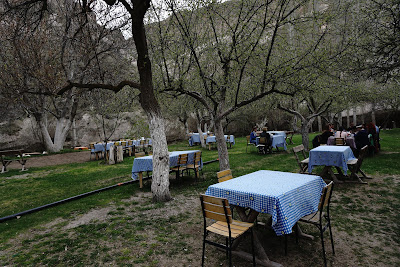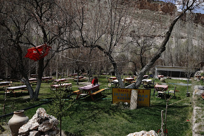 La poalele unui cartier, se întinde o livadă cu mese. Pe malul unui pârâiaș. Rai. Rai turcesc, dar Rai. Mă pun pe vorbit cu cel care deține locul. E o afacere de familie. El și fratele lui au grijă de organizare. Soția și cumnata gătesc și spală vase. Copiii sunt implicați în adusul de legume și în coptul lipiilor. Bun așa. Ne invită să luăm loc. Nuuu, că așteptăm restul grupului. Nu-i problemă. Cât îi așteptați. Beți un pahar de apă. Ok, dacă nici turcii nu o au cu turismul…