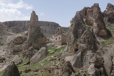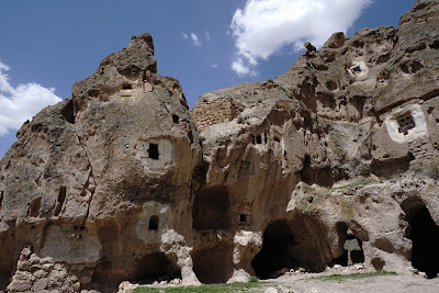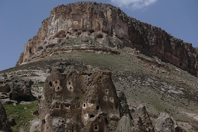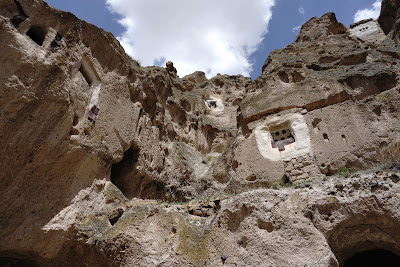 Îmda. Impresionante încăperile săpate în stâncă/rocă. Nu poți să nu te minunezi de ideile oamenilor de demult. Și de istețimea lor. Cum gândeau fiecare cămăruță. Ghidul ne arăta câteva ferestre marcate cu alb. Ne spune că sunt locuri unde trăiesc porumbei. Îi protejează. Pentru a folosi găinațul lor drept fertilizator natural. Aveam să mai auzim povești despre porumbei zilele urmatoare. Pătrundem încet încet în atmosferă. Începem să ne obișnuim cu priveliștea.