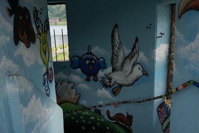 Preț de vreo 50 de fotografii, ne aflăm în drum spre Assmannshausen. Drumul nu e așa, orișicum. Nu. E prin pădurea Niederwald. Un fel de plimbare prin pădure, pe dealuri. E un drum forestier. Poate de asta ne și întâlnim în drumul nostru și cu pitici și cu bunici. Pentru că e accesibil. Din loc în loc, stau indicatoare. Care îți oferă alternative. Poți să mergi mai mult sau mai puțin până la destinație. Dacă îți place să caști gura la natură și să asculți păsăretul în concert, o iei pe cărarea mai lungă. Dacă te grăbești să prinzi vaporul înapoi, uiți de păsăret. Nu ne grăbim. Bodaproste că nu ne grăbim. Aș putea, vorba lui Eminescu, să mai am un singur dor? Nu poți, Andreea, nu poți. Vezi-ți de drum că nu ai tu șansa asta, să mori p-aci. Bine. Ajungem la telescaun. Și pornim să imortalizăm vii și case din telescaun. Nu e nici frig, nici cald, nici soare, nici nor, nu ne e nici foame, nici sete, vrem doar să rămânem aci. Aci în Raiul ăsta nemțesc. Nu aci în telescaun.