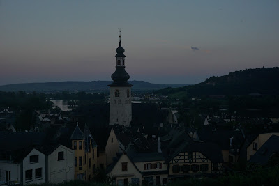 Păi, în calitate de cireașă de pe tort a excursiei nostre, ultima oprire trebuia să fie undeva uau. Undeva unde să ne rămână mintea și o bucată din suflet. Undeva unde să ne dorim să revenim nu anul următor, ci luna viitoare. Bine. Si, un’ să fie locul ăsta? Păi să fie capitala rieslingului. Că tot suntem în plină zonă viticolă, în Defileul Rinului. Toată zona cuprinsă între Koblenz și Bingen face parte din patrimoniul Unesco. Cu tot cu orașul dintre vii. De cum am ajuns la cazare, am știut că multă vreme voi povesti despre locurile astea. Am dormit într-un conac, în mijlocul viei. Camerele și curtea erau, cum altfel, decorate cu tema principală strugurii și vinul. Drumul până în vie, nemțesc, normal. Adică un fel de autostradă nouă de la noi. Indicatoare din 100 în 100 de metri ca să știi să nu ajungi pe tarlaua altuia. Terasa cu mobilier din fier forjat oferea o priveliște minunată asupra întregii regiuni. Nu ne-am lăsat impresionate pe cât am fi dorit de locație. Am pornit să descoperim orașul.
