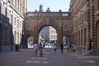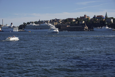 Bine. Tot rătăcind pe străzi pietruite, printre turiști și localnici dimpreună, ajungem la Palate. Ăla al Parlamentului și ălălalt, al regelui. Mă așez turcește între ele. Pe iarba verde crud din grădinile care îmi oferă și priveliștea Operei Regale Suedeze și priveliștea unui cârd de rațe care dau năvală peste o doamnă iubitoare de plajă și de soare. Îmi trag sufletul. Respir. Aer curat. E liniște. De fapt, e un zumzet de turiști relaxați. Și de localnici relaxați. Fix lângă grădini se lucrează. Se întind niște corturi. Nu știu cum naiba muncesc Gigeii lor. Dar nu îi aud. Corturile și scena sunt pentru Stockholm Culture Festival care urmează să înceapă în 15 august. Hai că ne odihnirăm destul! Hai să o luăm pe malul apei spre Fotografiska. De fapt, căutăm punctele de belvedere. În drum trecem pe lângă enormități de vase de croazieră. Și pe lângă bărci care au ca drept job plimbarea turiștilor și deci obținerea de bani pentru buget. Ordine și disciplină și pe apă. Cel puțin așa se vede de sus, de pe moțul dealului unde este cocoțată Katarina Kyrka. Și unde era cât pe ce să ne așezăm la o friptură de ren. Am renunțat. De frica lui Moș Crăciun care, rămas fără trăgător, ne-ar fi șters pentru mereu de pe lista copiilor cuminți și, deci, cadorisiți anual.