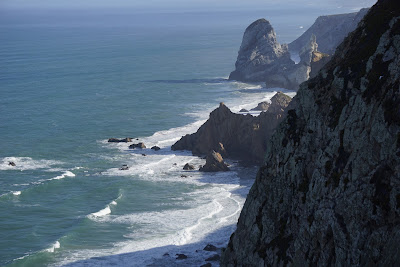 Tot aci, la Cabo da Roca, experimentăm spiritul de turmă atât de bine conturat în Românica. Pornim să coborâm pe ceva drum întru obținerea de peisaje spectaculoase. La început eram noi trei. După 10 minute nu prea mai aveai unde să arunci un vârf de bold printre sau pe pietrele mai devreme pozate. E bine. În unele domenii se numește trend setting. Bine! Hai să pornim mai departe și să lăsăm mioarele în urmă. Urmează o discuție amicală cu Gabriela. Îi este transmisă tranșant dorința noastră de a rămâne totuși pe șosele. Ea zice da și ne pune să o luăm pe o cărare. Decidem să nu o mai ascultăm și să o forțăm la reconfigurarea traseului. Îmda, ea reconfigurează traseul, noi cât pe ce să ne pupăm cu un autobuz care venea pe drumul și de dus și de întors. Clar nu-i de joacă p-aci, pe miniaturile astea de străzi.