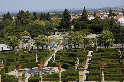 După Trasfăgărășanul ăsta al lor, pornim tot printre munți, la o altitudine mai omenească. Ne întoarcem din toamna timpurie. Nu îi mai îngheață lu’ Sonică nasul când îl scot pe geam și îl pun la treabă întru imortalizarea vreunui munte pe jumătate pârjolit. Încep iar satele. Cu case albe. Mai avem nițel de mers. Ca să ne mai dezmorțim, ne oprim în Castelo Branco. Ne minunăm în grădinile străjuite de statui baroce și garduri vii din cismir care îmbogățesc un fost palat episcopal, Antigo Paco Episcopal. Am coborât ceva până la palat, că e așezat fix la poalele dealului. Și gândul îmi stătea numai la faptul că trebuie să ne mai și întoarcem. Deși Castelo Branco are câteva porțiuni care datează din Evul Mediu când a făcut parte din teritoriul donat Cavalerilor Templieri, mie tot străzile înguste, înțesate de colivii de păsări mi-au plăcut mai mult. Nu am poposit aici mai mult de o oră, suficient timp pentru încărcare de baterii și dezmorțit de funduri.