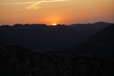 Hai să ne și cocoțăm pe zidurile cetății. Ce naiba? Chiar se vede Spania! Și muntii Serra de Estrela ai Portugaliei! Am uitat să zic. Ne aflăm pe cel mai înalt vârf al Serra de Sao Mamede. Se văd și urmele potopului din vară, deși Antonio zicea că ei au fost puțin afectați. Tot el ne-a povestit că incendiile au fost stinse și cu ajutorul pompierilor spanioli. Mai urcăm câteva trepte. Să nu uităm că suntem în țara lui urcă și coboară. Cetatea mi se pare extraordinar de bine întreținută. Înăuntrul castelului dai și peste un magazin de suveniruri și alte matrapazlâcuri. Ne hotărâm să așteptăm apusul în zonă. Ce nu am luat în calcul a fost că suntem sus și pe masură ce soarele pălește, răcoarea devine frig. Rezistăm cu stoicism ca să prindem mingea de foc. Sonică protestează. I-au înghețat bateriile. Așa că, după doua trei cadre, o pornim la pas prin sat. Așa dăm peste Pousada Santa Maria, un hotel din lanțul celor de lux. Ne limităm la a-l admira. Pe noi ne așteaptă casa din mijlocul dealului.