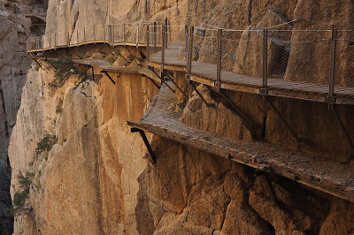 Acu’, dacă e să stăm strâmb și să judecăm drept, El Caminito a fost construită pentru a lega Salto del Gaitanejo de Salto del Chorro, două hidrocentrale construite lângă cele două cascade. Drumul era destinat transportului de materiale între cele două locații și a deplasării muncitorilor. Ulterior, a început să fie folosit și de localnici, făcându-se în scurt timp praf. Cam ca șoselele noastre după câteo iarnă. În 1921, regele Alfonso al 13-lea a folosit drumul pentru a ajunge la inaugurarea barajului Conde del Guadalhorce. Așa a fost botezată cărarea asta Drumul Regelui.