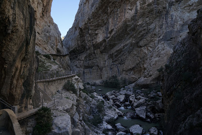 Traseul se termină la El Chorro. Acolo lași cascheta, bonețica la gunoi și mănânci o înghețată. Cu ochii la un alt pod de vis. Îți dai răgaz de vreo câteva zeci de minute să îți tragi sufletul și să lași amintirile să se fixeze bine. Și pe Sonică să își revină din șoc. La el de plăcere. La mine de frică. Pornim spre autobuz. Că da, de aci te ia autobuzul și te duce unde ai lăsat mașina, adică la intrarea pe Caminito. Până și drumul cu autobuzul e fain. Serpentine, priveliști, șoferi pricepuți.